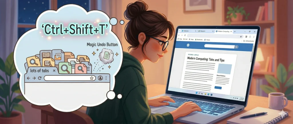 The keys? Ctrl, Shift, and T. Hit it after closing a tab by mistake, and it reopens the exact page. Do it again for the one before that. It’s like time travel for your surfing sessions.