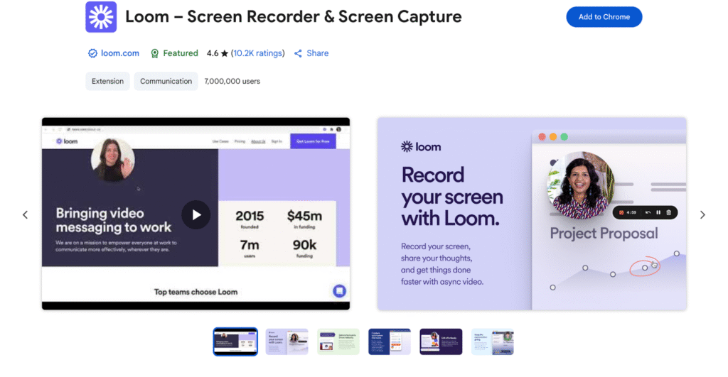Sometimes you don’t want to download anything, or you’re on a computer that’s not yours. That’s where the Loom Chrome screen recorder comes in clutch. It’s a free online screen recorder with a 4.6/5 rating from over 10,000 Chrome Web Store reviews. Here’s how to use it: