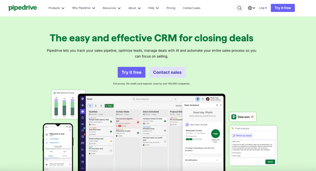 Because of the challenges of business in 2026, effective, scalable, and smart CRM software is more in demand than ever. There are a number of things that Pipedrive excels quite well: